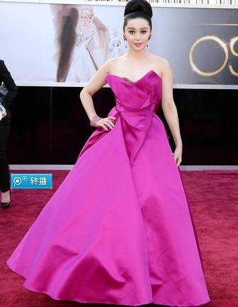 第85屆奧斯卡紅毯 范冰冰粉色長裙秀香肩顯高貴